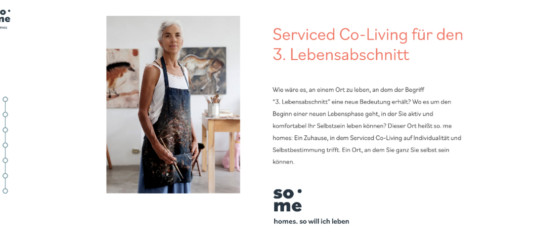 In der Hand den Pinsel, um den Körper die farbbekleckste Schürze, der Blick der weißhaarigen Frau entschlossen - so positioniert Soravia sein erstes Serviced-Co-Living-Konzept auf der eigenen Website. Der österreichische Immobilienkonzern, der u.a. an Numa und Ruby beteiligt ist, will mit der Marke „so. me homes“ noch in diesem Jahr starten und plant das Rollout in Österreich und internationalen Standorten.